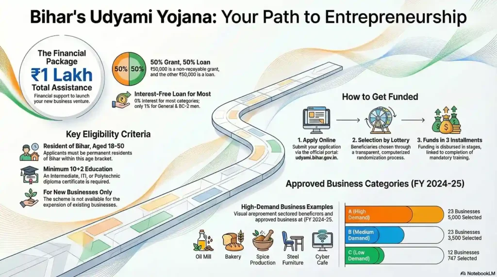 Bihar Mukhyamantri Udyami Yojana के प्रमुख लाभ: